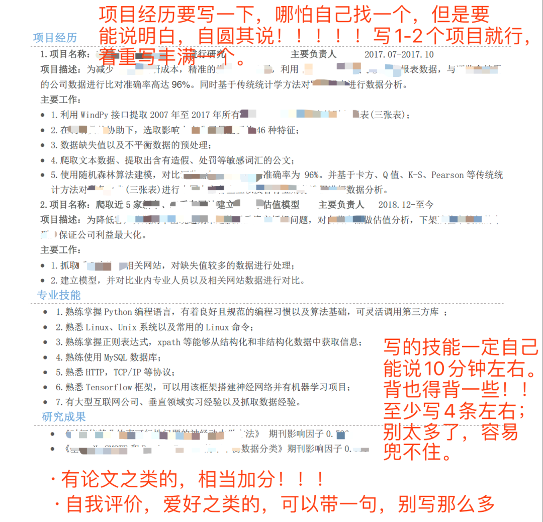 大家会发现这两封简历都是两页,所以要尽量把自己的简历控制在1-2页内,不要再多了。作为一个应届生写一个三张纸的简历,太夸张了,HR也看不过来。别用太花哨的简历模板,简历内容绝对不能造假,因为假的永远真不了。大家知道名校那波人花在简历上的时间是多少吗?中文、英文各一份,而且斟酌了再斟酌,什么该写、什么着重写、什么一笔带过、什么不写……甚至动用各种关系找好多个学长、老师给过简历,要指导建议。因为简历写好了就会多一个面试机会,年薪就会多多少万。差不多了,对于一心想找工作的人,我的简历和面试建议就是以上这些。别抱怨,别气馁,受到挫折很正常。多尝试总会有机会的。去不了大公司,可以先去中小公司干着,干1-2年后带着工作经验再跳槽。总之要让自己先有一份工作,不要在乎面子之类的,真的除了你自己别人没人在乎你的面子。大家知道自己现在多幸福么?刘传明老师一个个联系我们这些毕业生,目的就是希望给大家多给予一些岗位和招聘信息,以及一些有帮助的建议。