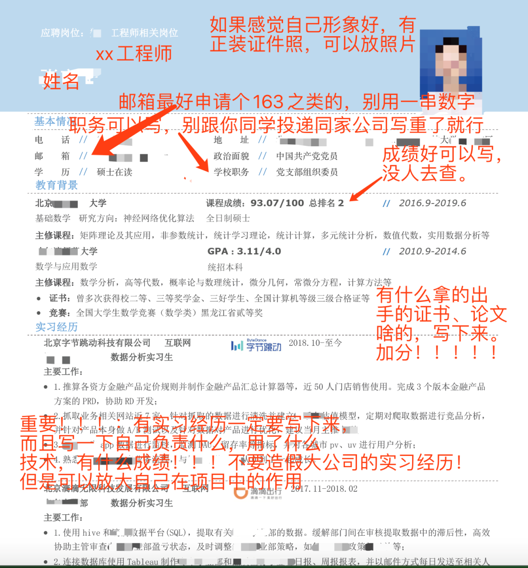 现在谈谈如何进入面试环节。第一时间你的简历应该怎么写?我着重说一下想面试技术岗位的。